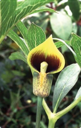 Arisaema flavum is a sun loving cobra lily. Widespread across eastern Africa and southern Asia . Grown in Sun to Part Shade